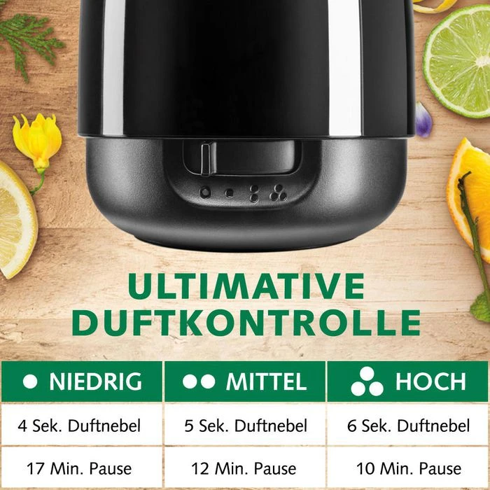 • Duftintensität und Zeitintervalle sind in 3 Stufen regulierbar