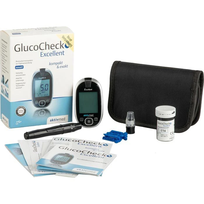 Lieferung: inkl. Stechhilfe, 10 Teststreifen, 10 Lanzetten, Etui, Tagebuch