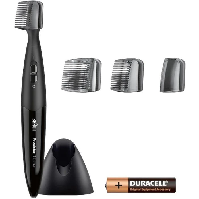 Lieferung: inkl. 2 Kammaufsätze (5 mm, 8 mm), Schutzkappe, Trimmerständer, 1x AAA Batterie