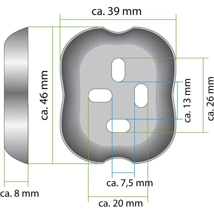 • Kann alternativ auch geklebt werden (nicht im Lieferumfang enthalten)