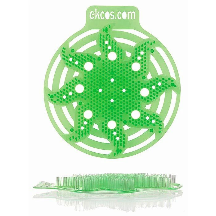 sonstiges: flexibles Material, passt sich dem Pissoir an, verbreitet einen angenehm fruchtiger Geruch, Duft hält 30 Tage an, schützt wirksam vor Verstopfungen durch Unrat, Zigaretten und Papier, Borsten dienen effektiv als Spritzschutz