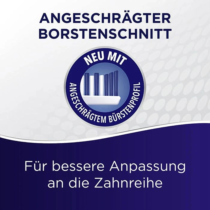 • Angeschrägte vordere und hintere Borsten passen sich der Zahnreihe an