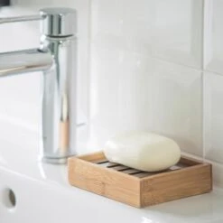 Relaxdays Seifenschale Eckig, Mit Abtropfschale, Bambus Und Edelstahl, Braun