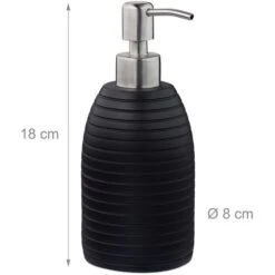 Relaxdays Seifenspender Rillen, Schwarz, Kunststein, Mit Edelstahlpumpe, 300ml