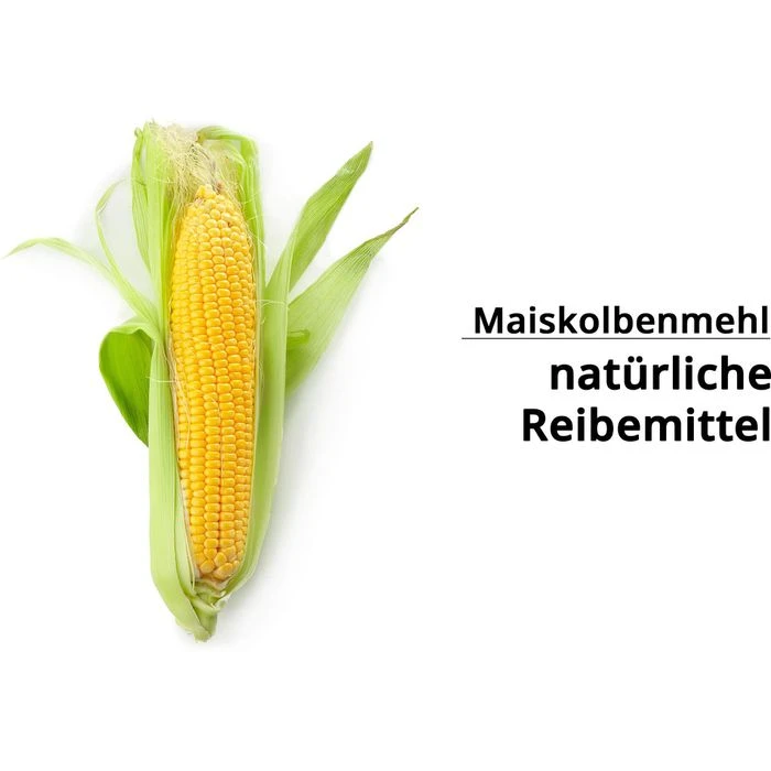 • Enthält natürliche Reibemittel aus fein vermahlenen Maiskolbenmehl