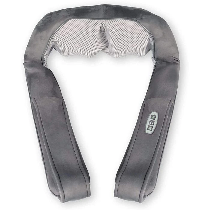 sonstiges: intensive Shiatsumassage im Nackenbereich, 4 rotierende Massageköpfe mit 3 Rotationsgeschwindigkeiten, flexibel einsetzbar auch an Schulter, Rücken, Bauch, Ober- und Unterschenkel, pflegeleichter Bezug über den Massageköpfen, Massageintensität durch Zug auf die Halteschlaufen individuell regulierbar, zuschaltbare Wärme- und Rotlichtfunktion, einfache und kabellose Bedienung durch integriertes Bedienfeld, kabellose Massage durch eingebauten Akku (Nutzungsdauer ca. 1,5 Stunden), Abschaltautomatik, ergonomisches Design, wahlweise Akku- oder Netzbetrieb, integriertes Bedienfeld