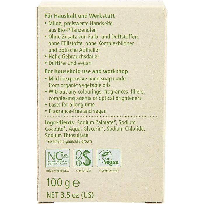 • Vegan, aus Pflanzenölen zu 100% aus kontrolliert biologischem Anbau