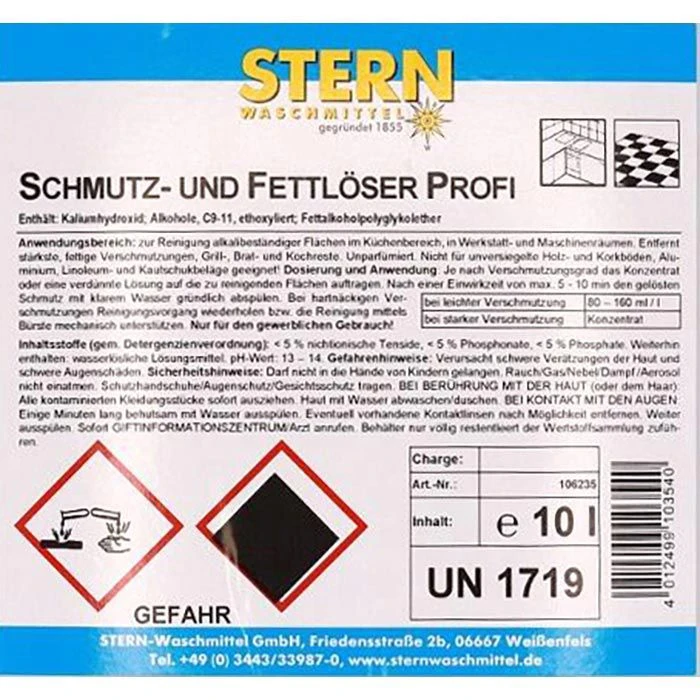 Hinweis: Fettlöser vorsichtig verwenden. Vor Gebrauch stets Etikett und Produktinformationen lesen.