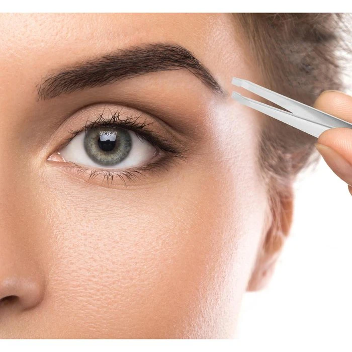sonstiges: präzises Zupfen von Gesichtshaaren und Augenbrauen ohne die Haut zu verletzen, schräges Pinzettenmaul, sterilisierbar, rostfreier Edelstahl, resistent gegen Korrosion, mattierte Oberfläche, ideal für den täglichen Gebrauch